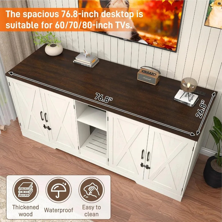 76 Inch Large Cat Litter Box Enclosure Designed for Two Cats with Integrated Power Outlets Double Wooden Pet Washroom Furniture