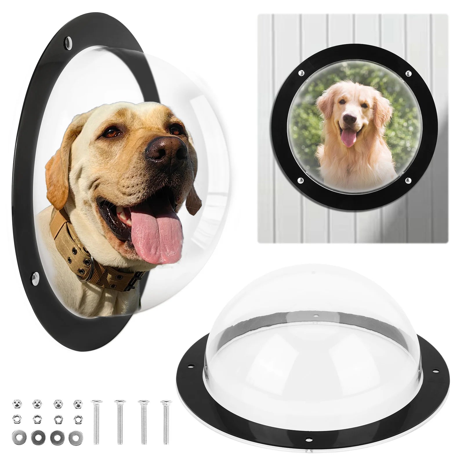 5.Wide Application: This dome-shaped dog window fits most backyard fences and can also be used for dog kennels, nurseries, henhouses, and even playgrounds indoors and outdoors.