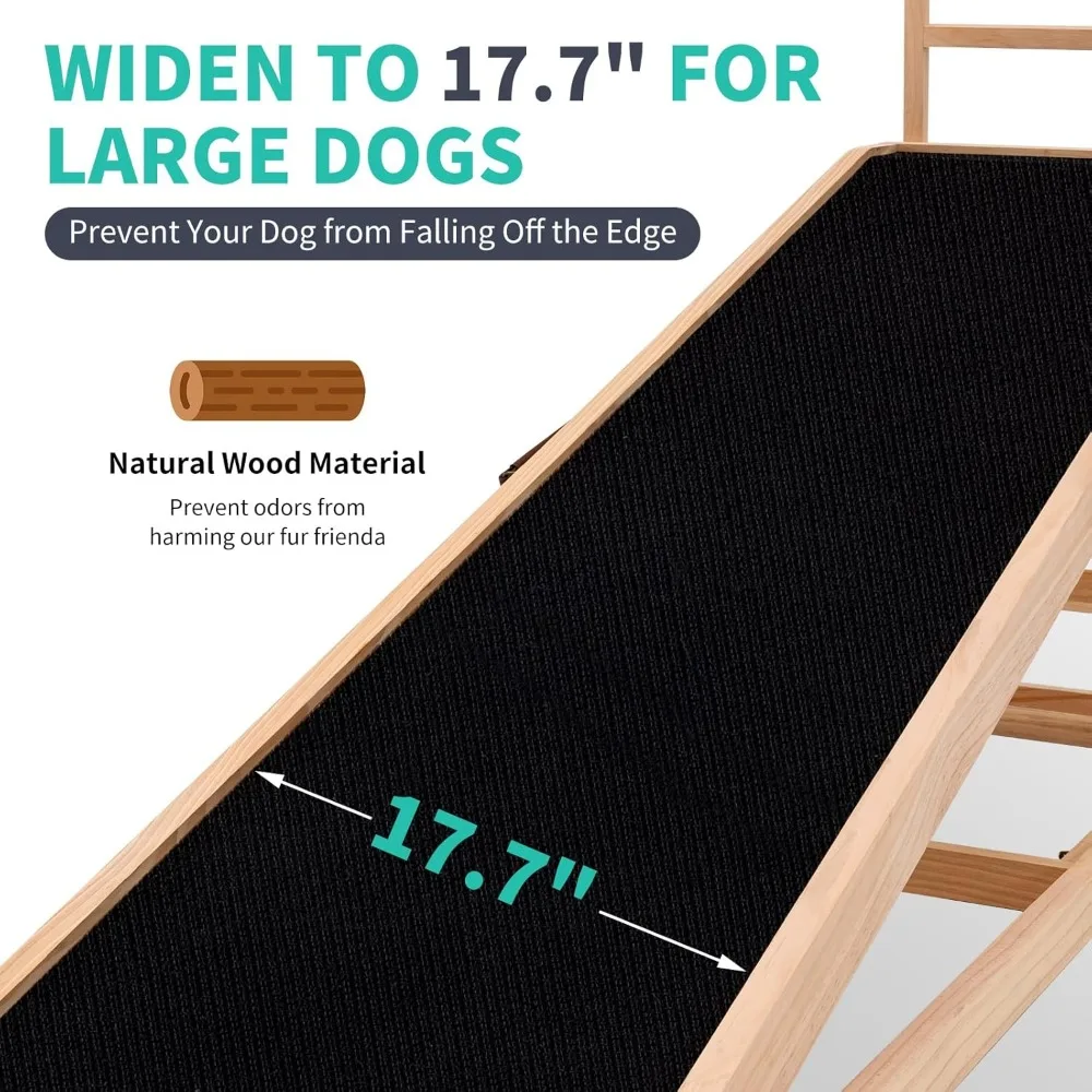 - STURDY & DURABLE: Our pet ramp for dogs and cats is specially made very well - solid wood construction and sturdy stainless steel fasteners, which has been tested to support up to 200lbs. When they jump off the bed, sofa, and sofa, there is no need to worry about getting injured, which provides safety for your pet.