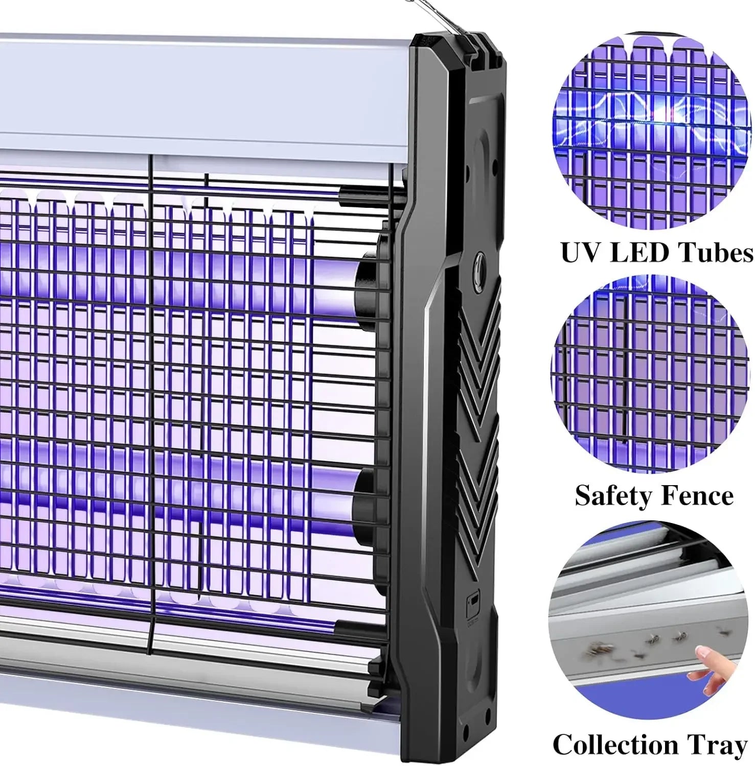 Reliable Bug Zapper: There are four primary components of electric bug zapper, the power grid, trapping LED lights, protective fences, and a collection tray. The bug zapper functions well when combined with a 3200V power grid and trapping LED light that has a special wavelength for catching insects. By using phototaxis, this mosquito trap draws practically all flying insects, which are then captured and electrocuted. Perfect for usage in garages, sheds, warehouses, and homes.