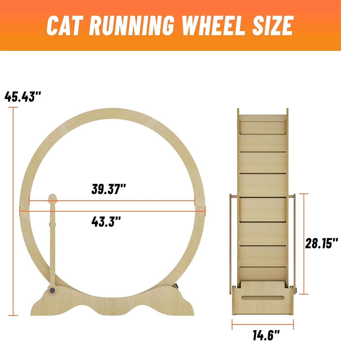 【Jumbo 48" Size Tread 】:Specifically engineered for large and giant cat breeds . Our 48-inch diameter ensures your cat's spine remains in a natural, healthy position while running. The generous 14.6-inch wide track provides ample space for even the largest cats to run comfortably, or for two feline friends to jog side-by-side, promoting shared exercise and fun.