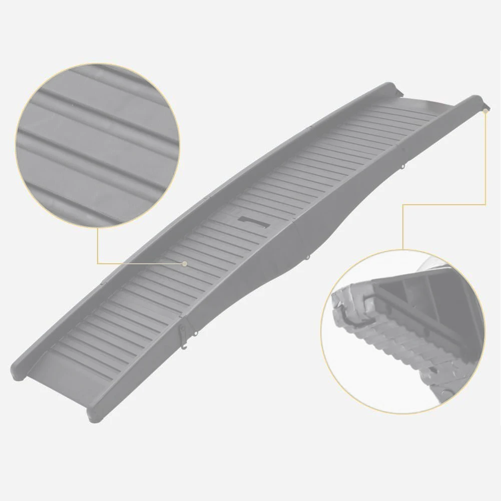 Features: Specification: Origin: Mainland China Unfolded size: 152*12*40cm Folded size: 42*40*20cm Material: PP Application scenario: Pet dog climbing ladder Features: The ladder consists of 4 foldable pieces, which are easy to store and move when folded, and can be stretched instantly when opened to meet the needs of pets up and down.