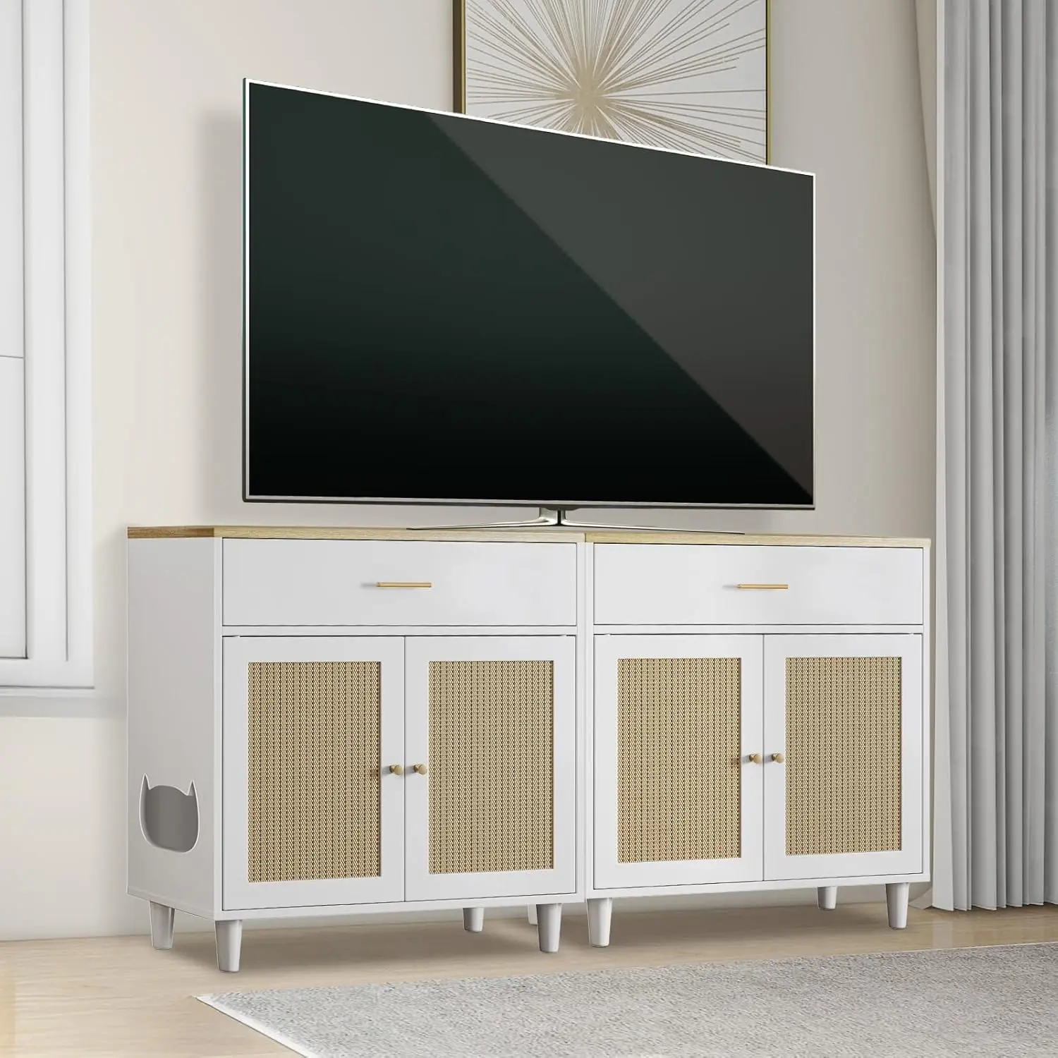 🛋️【Elegant Home Decor Blend】Doubles as a stylish sideboard! Blends seamlessly with your interior—adds a chic touch while giving your cat private litter space.