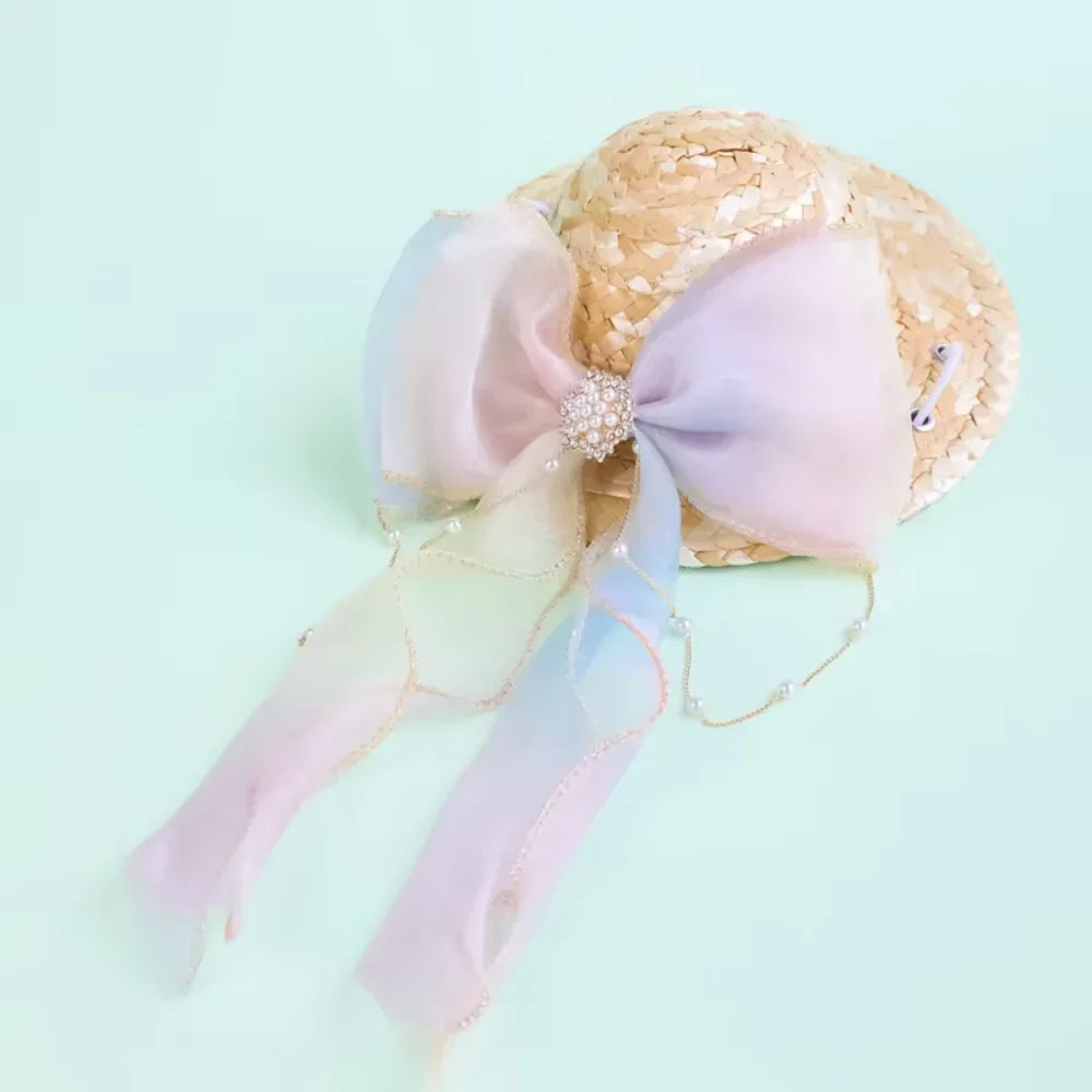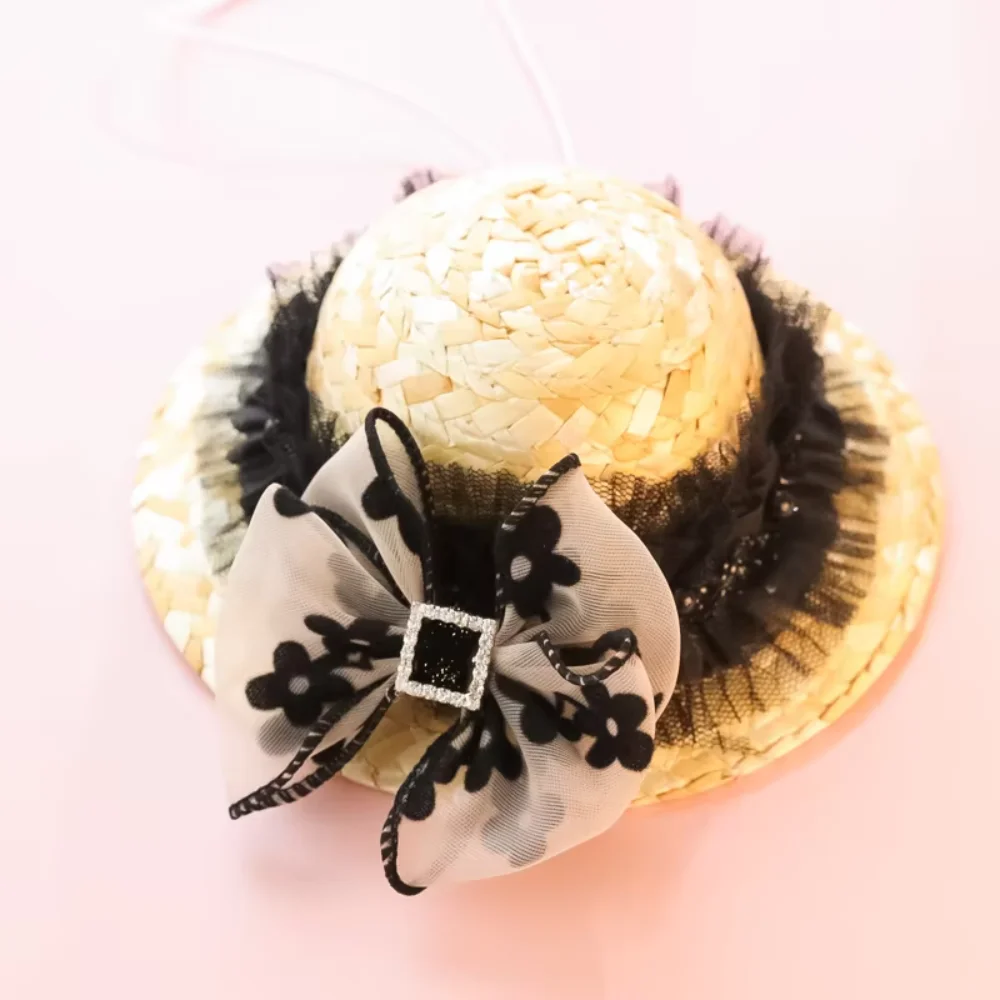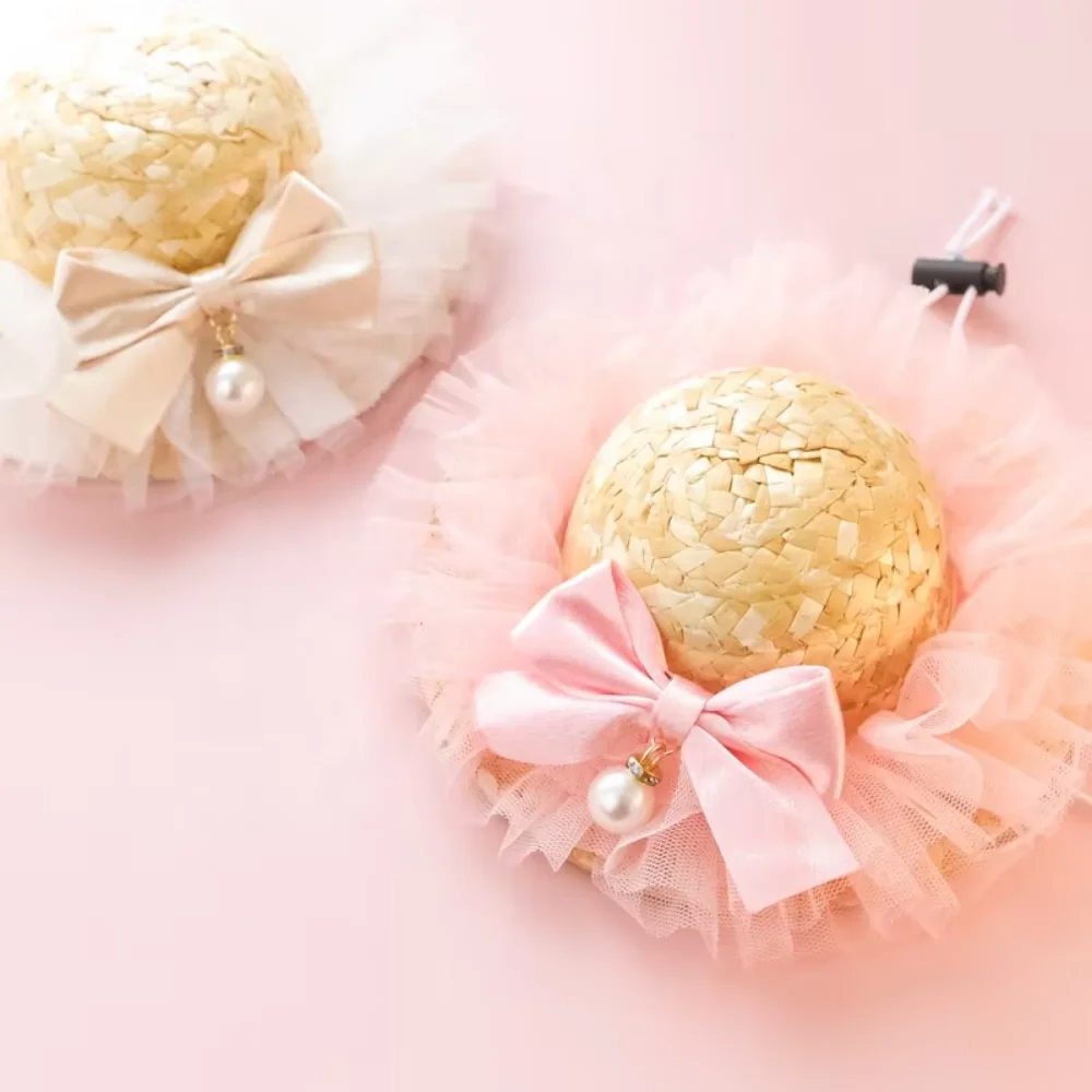 Ins Dog Hat Pet Clothes Accessories Weave Lace Sunshade Cute Pet Straw Hat High Provide Dog step Corbata para mascotas Ties