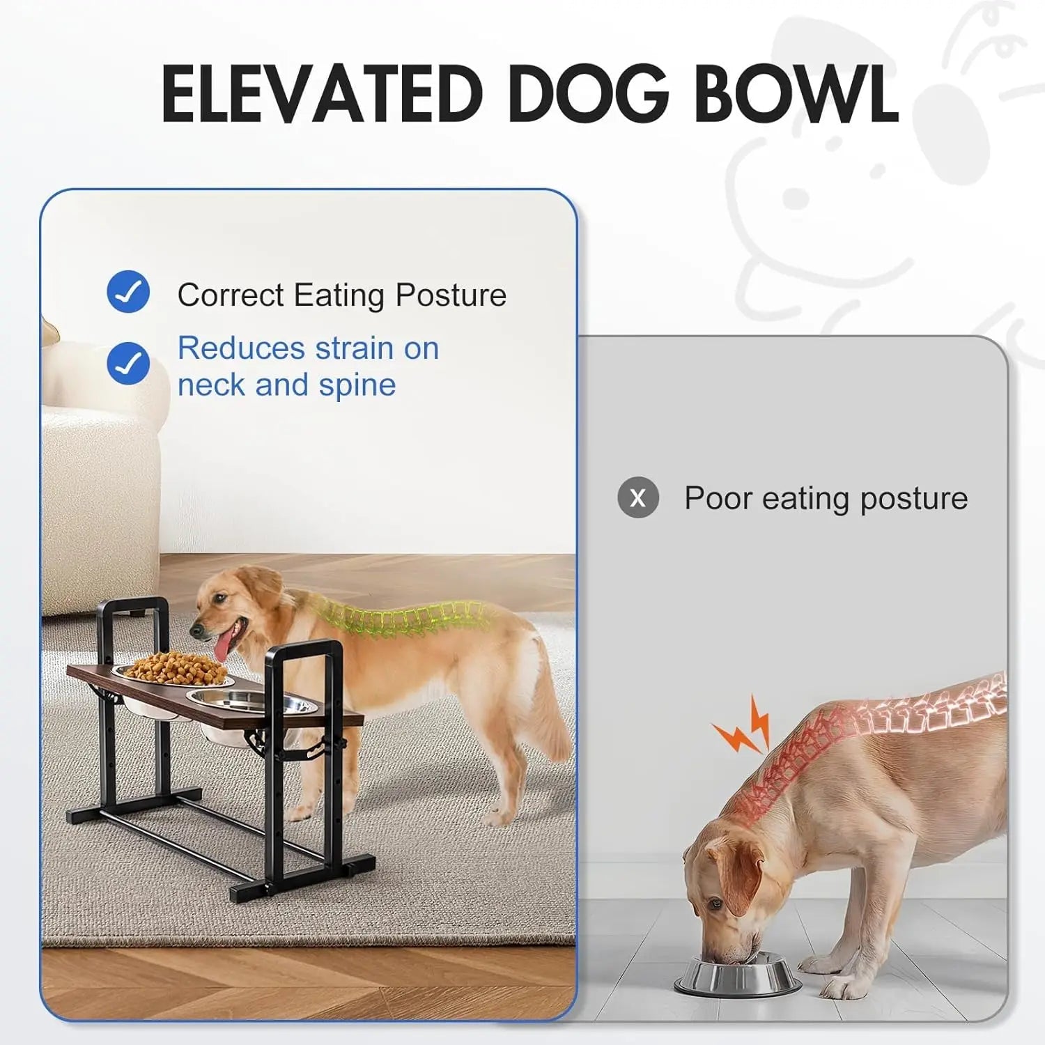 MEWOOFUN Raised Dog Bowl Height Adjustable Sturdy Wooden Raised Dog Bowls with 2x1200ml Stainless Steel Bowls for Dogs