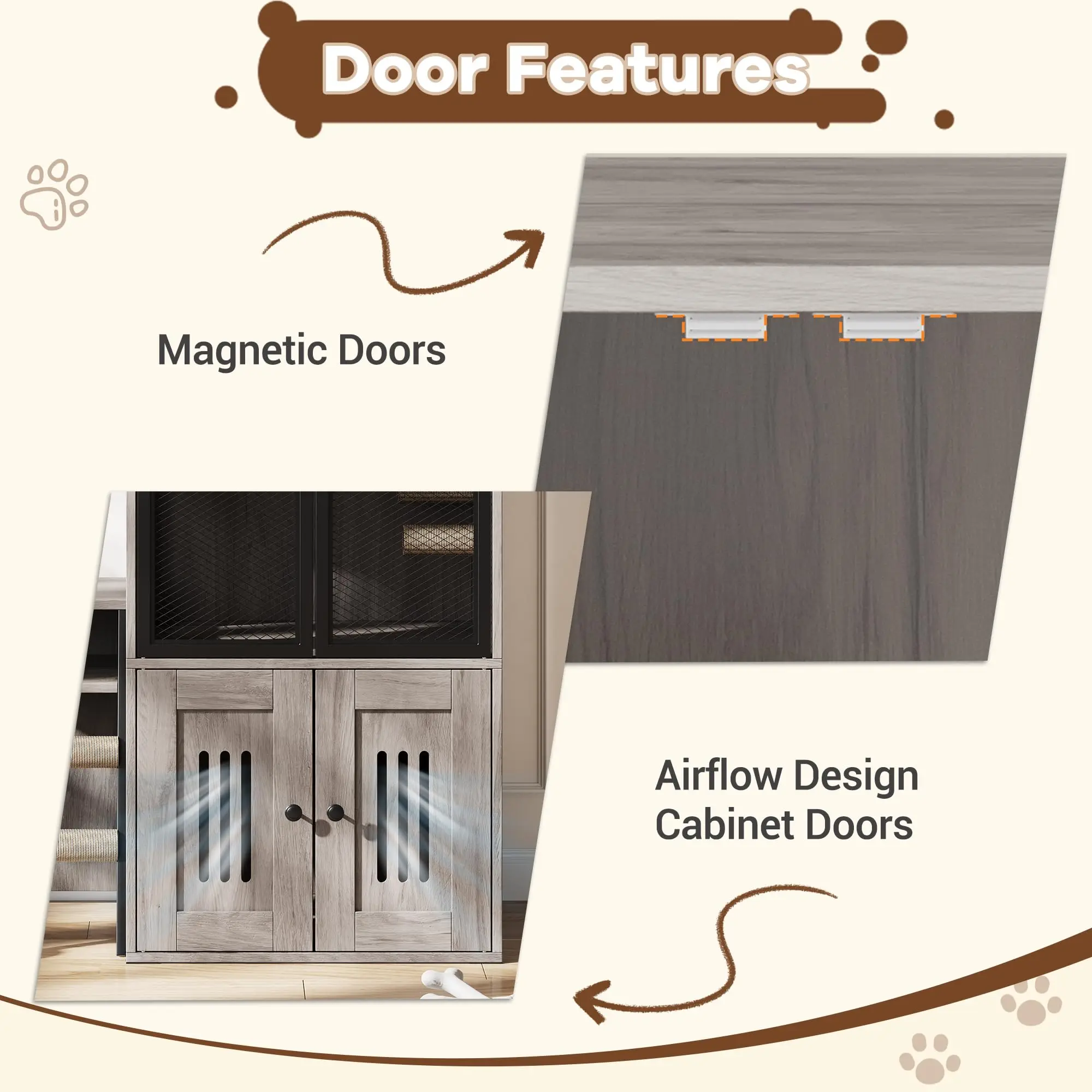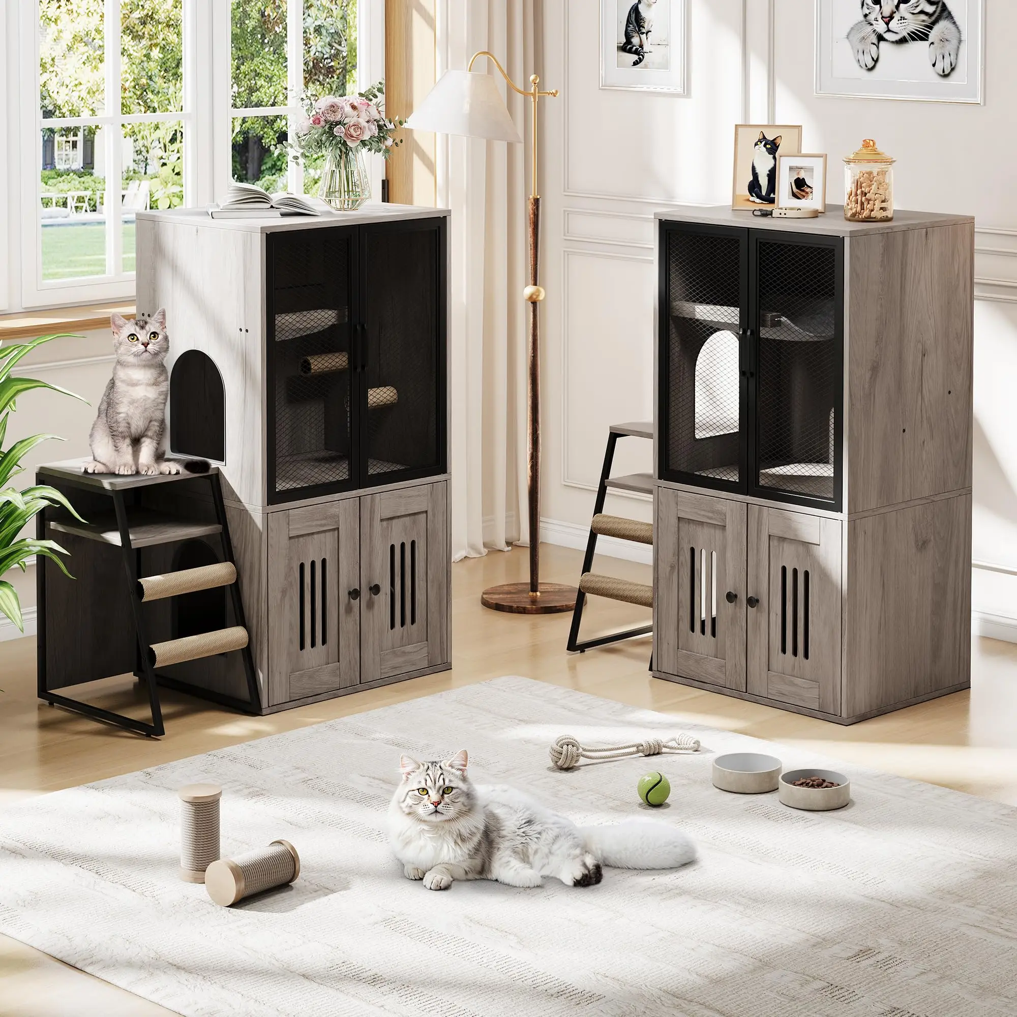 Multifunctional Cat Litter Box Furniture Enclosed With Doors Storage Sisal Ladder Playhouse Odor Control Easy Clean