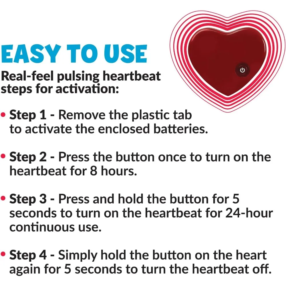 - EASY TO USE Real-Feel Heartbeat Dog Toys, batteries included! The Snuggle Puppy toy with heartbeat has a 'real-feel' pulse that calms your pup, appealing to natural instincts by mimicking a mother and litter mates. Two AAA batteries included.