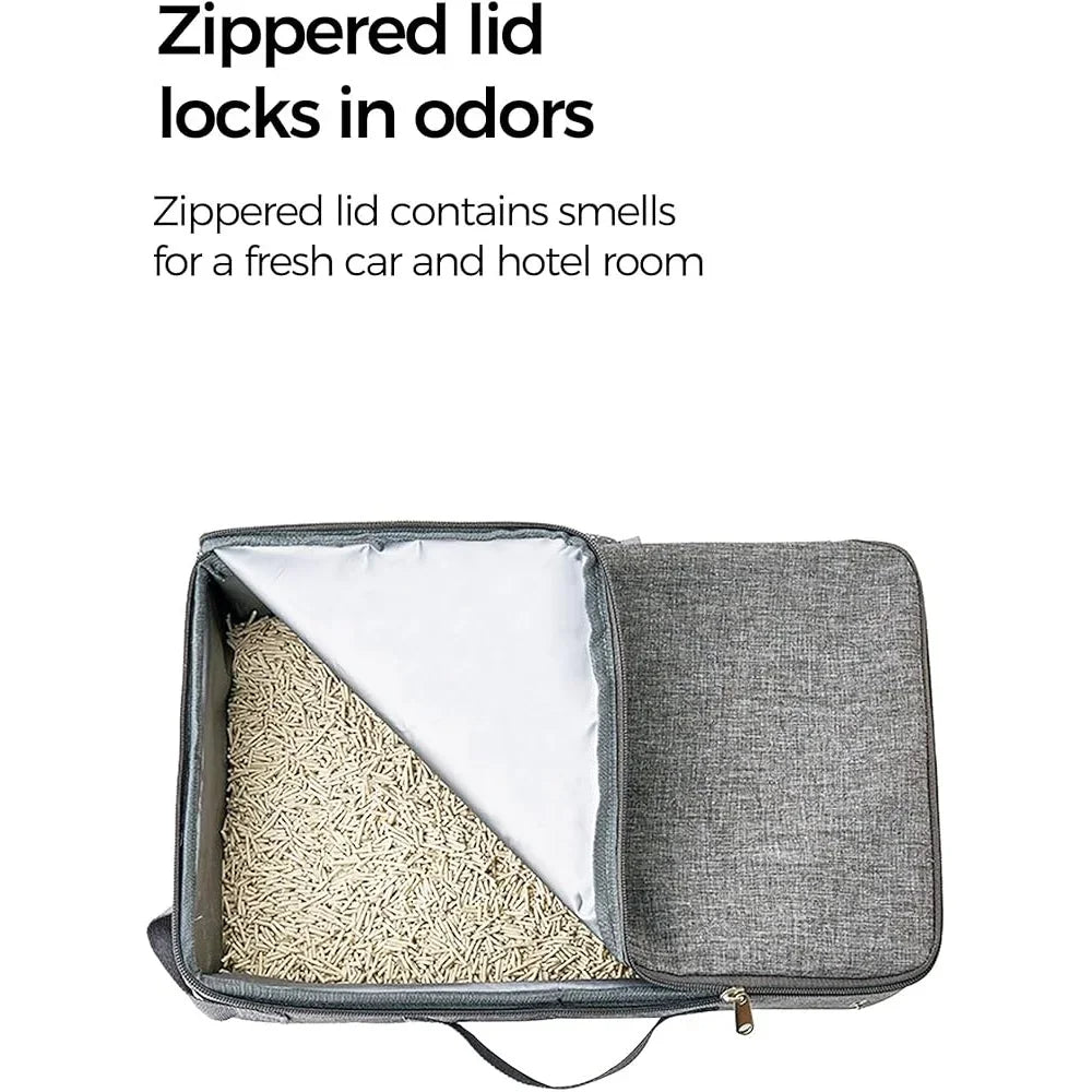 Portable Cat Litter Box Travel Easy Cleaning Foldable Leak-Proof Odor Control Covered Design with Lid Scoop Bowl Bags