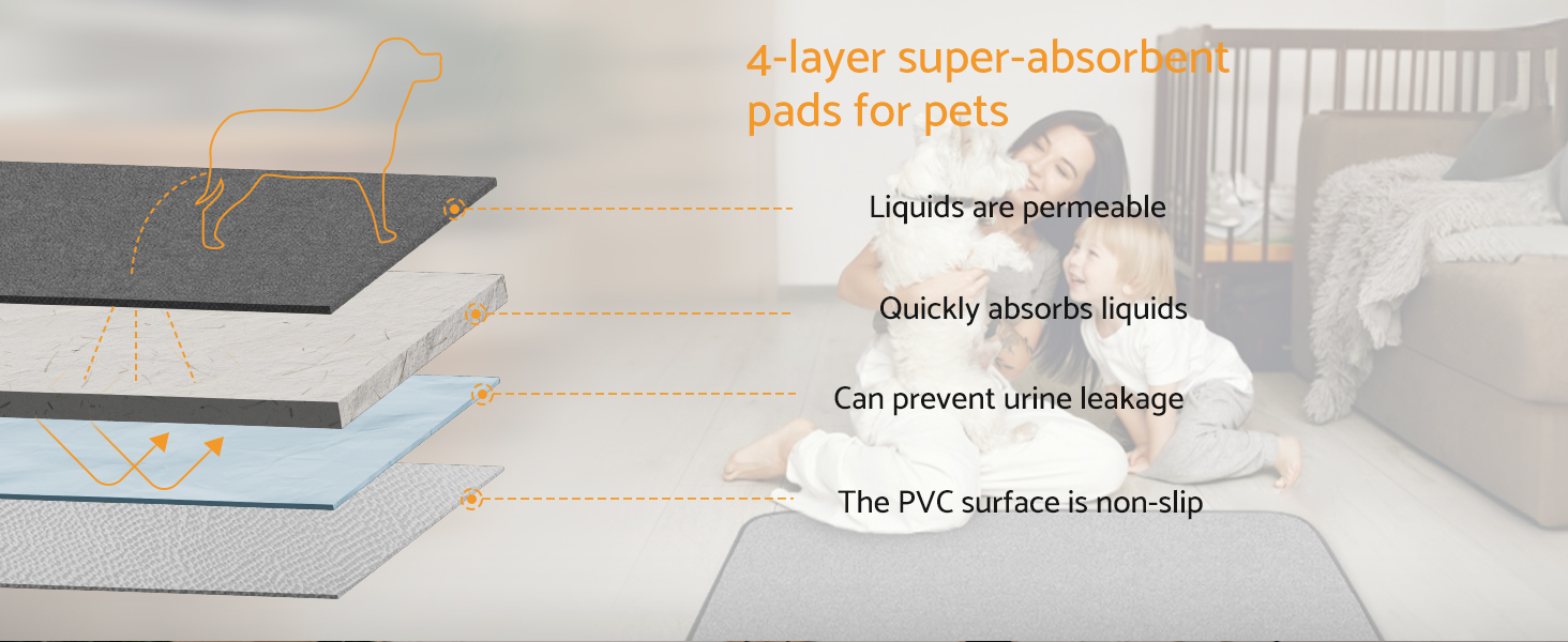 Super Absorbent & Waterproof: The 66"x49" size of these pee pads ensures extensive coverage and exceptional absorption. Featuring super absorbent materials combined with a waterproof TPU layer, these pads swiftly lock in moisture, effectively protecting your floors, carpets, and furniture from pet accidents