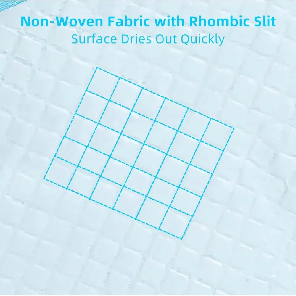 - [QUICK ABSORBENT & LEAK PROOF] With a Super Absorbent core that can lock in moisture by instantly absorbing and turning liquid into gel, each training pad can hold up to 3 cups of water. This product also featured with plastic back and border to prevent any leaking.