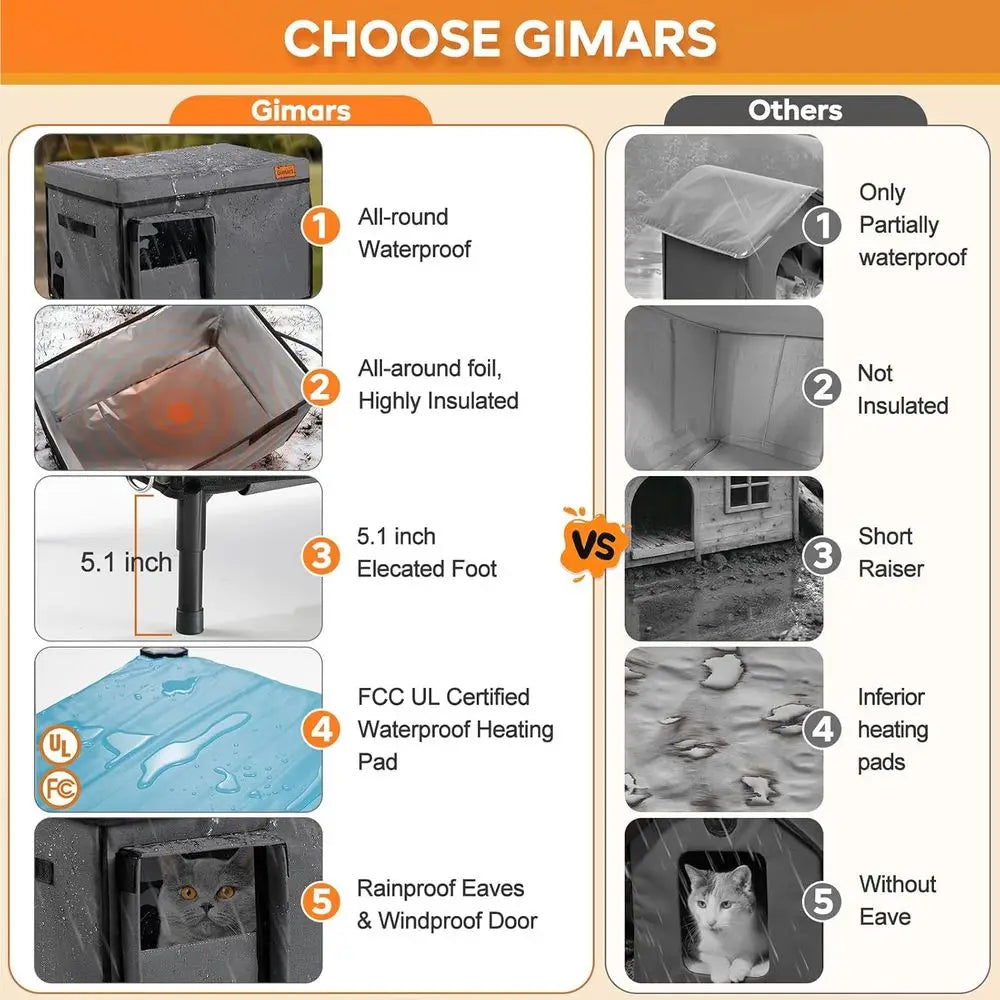 Weatherproof Outdoor Heated Cat House with 5.1 Elevated Shelter and Insulated Bed for Winter Protection