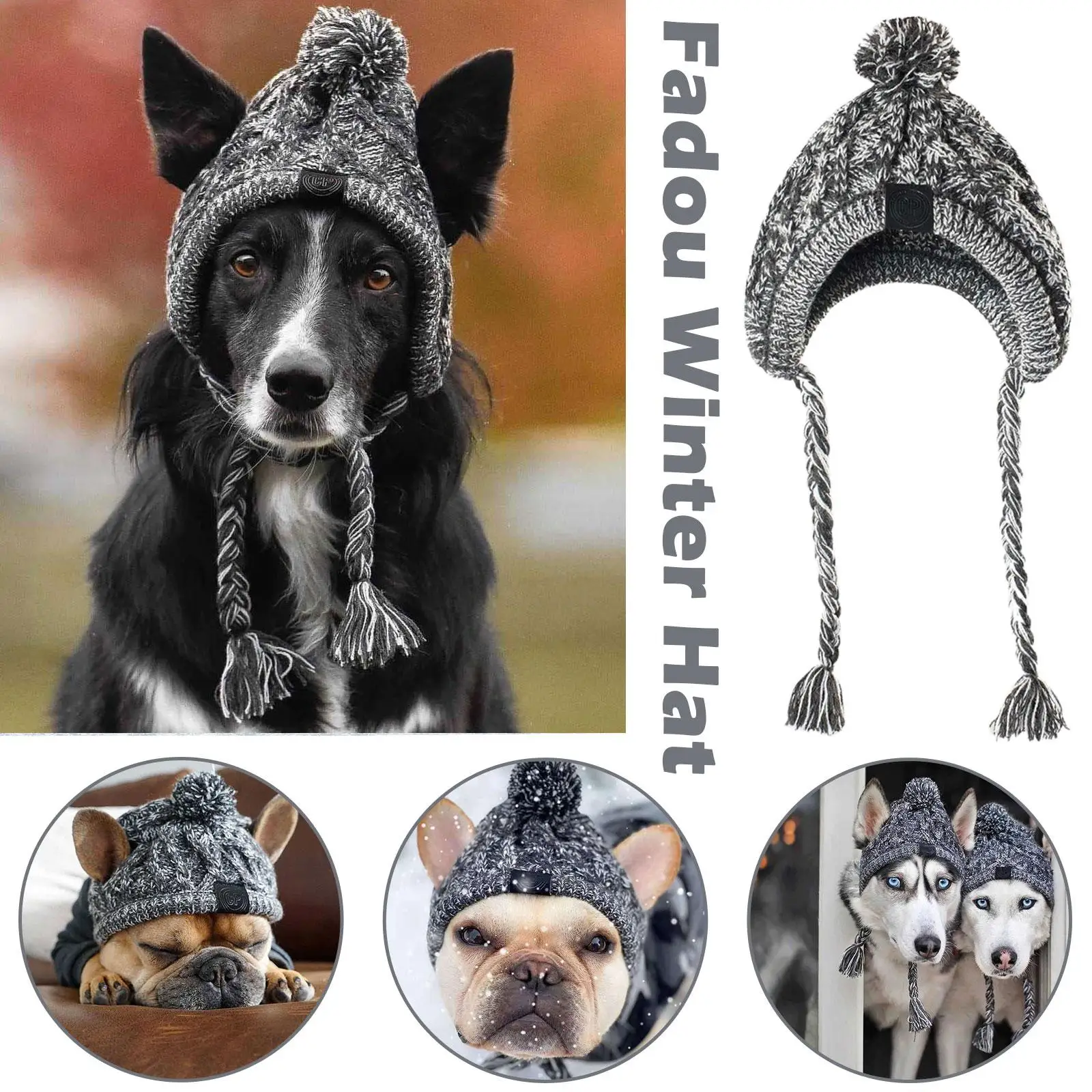 Winter Warm Dog Hats Windproof Knitting French Bulldog Hat For Dogs Chihuahua Hat Fluffy Ball Pet Hat Puppy Accessories